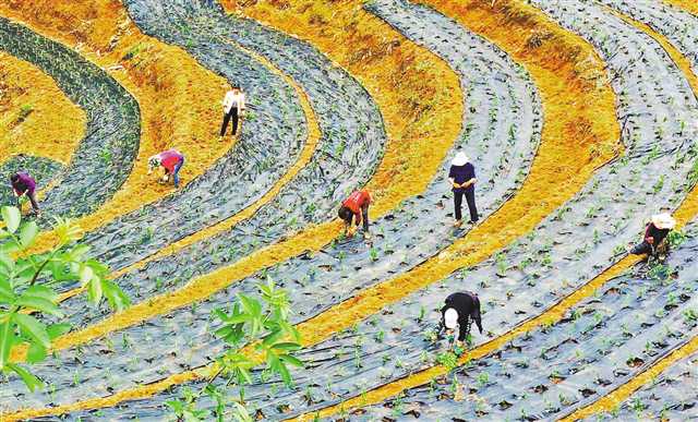 4月7日,萬盛經(jīng)開區(qū)南桐鎮(zhèn)王家壩村,村民在金絲皇菊育苗基地忙碌。