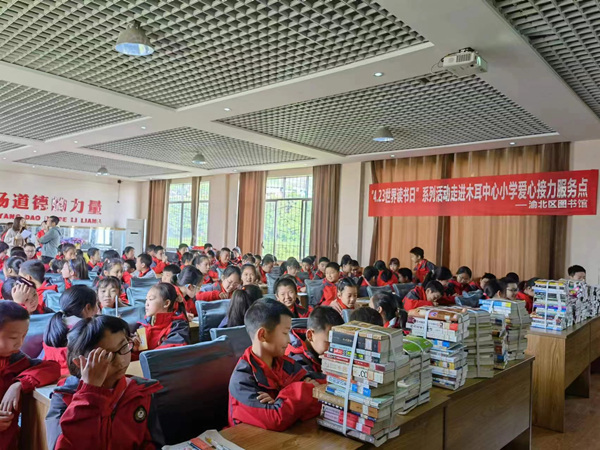為深入推進(jìn)全民閱讀,打造書(shū)香渝北,迎接第27個(gè)世界讀書(shū)日,渝北區(qū)文化和旅游委員會(huì)主辦,渝北區(qū)圖書(shū)館承辦,近期開(kāi)展了一系列線上線下讀書(shū)活動(dòng)。4月19日,活動(dòng)走進(jìn)木耳中心小學(xué)愛(ài)心接力服務(wù)點(diǎn),為孩子們送上300余冊(cè)精選書(shū)籍和一堂閱讀公開(kāi)課,讓書(shū)香滿溢校園。