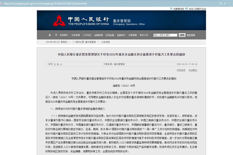 人民銀行重慶營業(yè)管理部官網(wǎng)截圖。