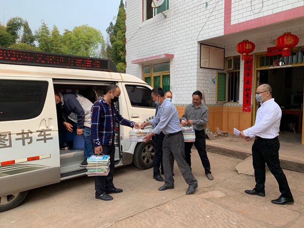 為村民們發(fā)放圖書。潼南區(qū)委宣傳部供圖