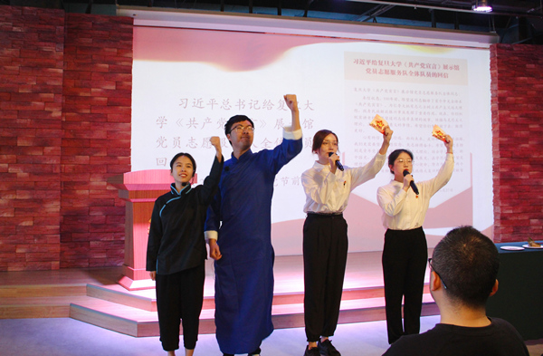 四川外國語大學青年黨史故事講演團宣講紅色故事。沙坪壩區(qū)委宣傳部供圖