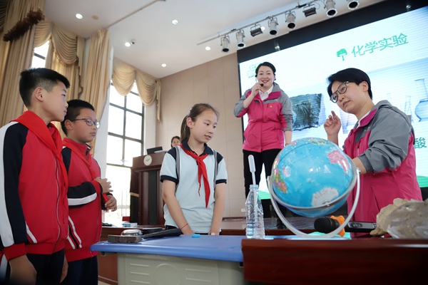 地質(zhì)科普進(jìn)校園 小學(xué)生觸摸“地球世界”