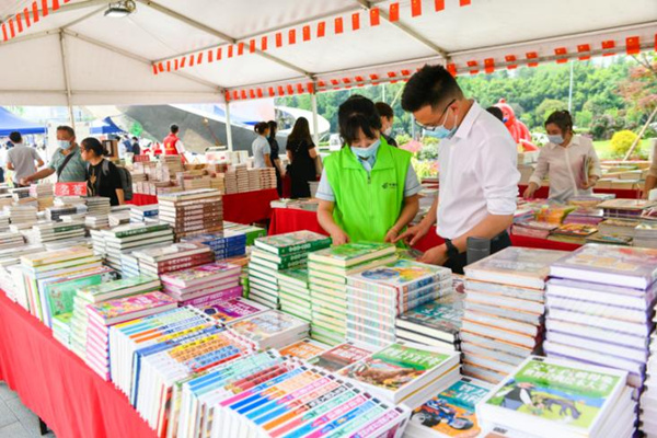 在現(xiàn)場惠民圖書巡展區(qū),不少市民聞訊前來挑選書籍。買2本送5本的優(yōu)惠,市民鄒先生給自己和孩子選了一堆書,“閱讀是一件很有益的事,希望經(jīng)常能有這樣的惠民圖書活動!