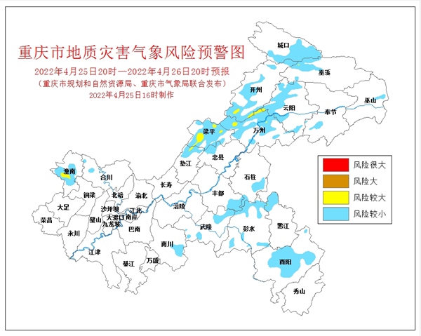 4月25日16時,重慶市規(guī)劃和自然資源局、重慶市氣象局聯(lián)合發(fā)布全市地質(zhì)災(zāi)害氣象風(fēng)險預(yù)警。