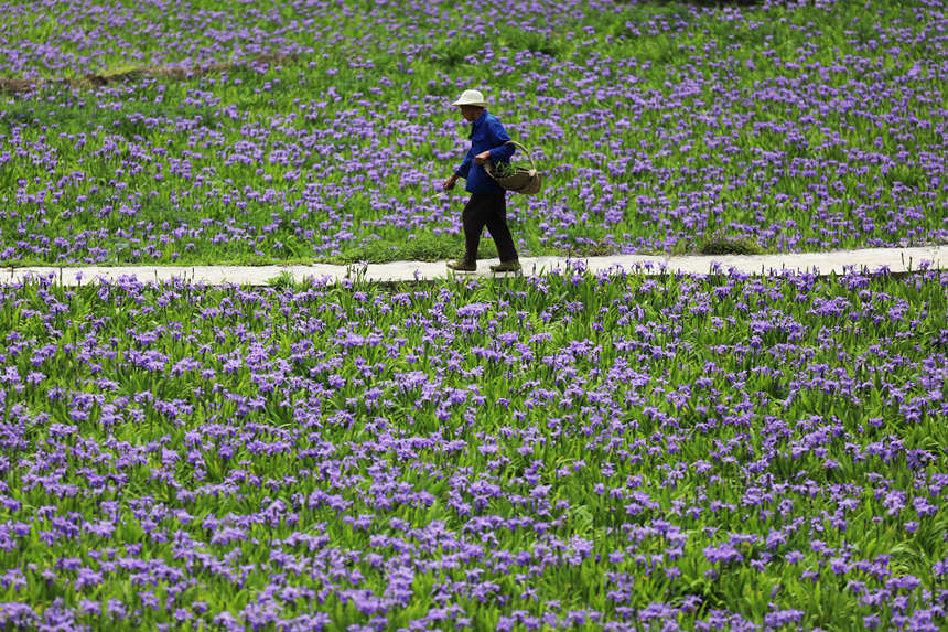 紫色的鳶尾花把田園裝扮得格外美麗。趙勇攝