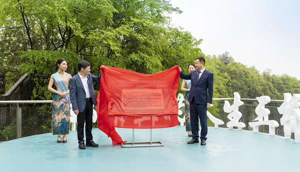 與會(huì)領(lǐng)導(dǎo)嘉賓共同為武隆喀斯特紀(jì)念郵冊(cè)揭幕。武隆景區(qū)供圖
