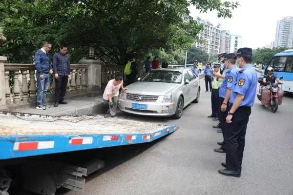 針對車輛違停進行專項整治。楊家坪街道供圖