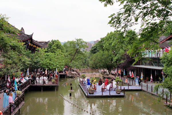 正則繡、璧山微雕、璧山吹打、璧山鼓韻等非遺文化也通過游戲藝術(shù)融入到了故事和劇本體驗環(huán)節(jié)之中。同時,游客進入景區(qū)必須更換為國潮服飾,并可更換“銀兩”作為貨幣購買璧山兔、來鳳魚、古法造紙、編藝、竹編、蜀繡等當?shù)靥厣a(chǎn)品,形成“玩在故事里、吃在故事里、住在故事里、購在故事里”的全新型的“情景式二消”模式。