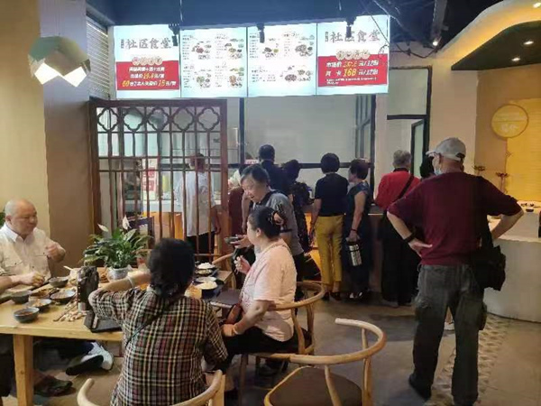 目前,社區(qū)養(yǎng)老食堂已經(jīng)投入使用(試營(yíng)業(yè)),食堂建筑面積為480平方米,餐廳約440平方米,可同時(shí)容納150人進(jìn)餐,食堂不僅提供堂食,還可為周邊居民提供送餐,以及生鮮凈菜配送服務(wù)。老人們不僅可以到這里來吃飯,還可以買半成品,自己回家弄,簡(jiǎn)單又方便。