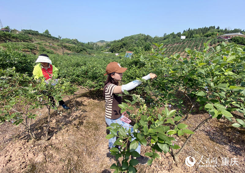 人民網(wǎng)重慶5月8日電 (劉政寧)“今年的藍莓口感特別好,甜味十足,自己在果園采摘別有一番風味!5月8日上午,在位于重慶渝北區(qū)石船鎮(zhèn)的普吉灣藍莓莊園,正忙于采摘的王女士開心地說道。進入5月,普吉灣藍莓莊園的300畝藍莓陸續(xù)成熟,趁著周末,不少市民帶著孩子穿梭其中,盡情享受鄉(xiāng)村采摘的樂趣。