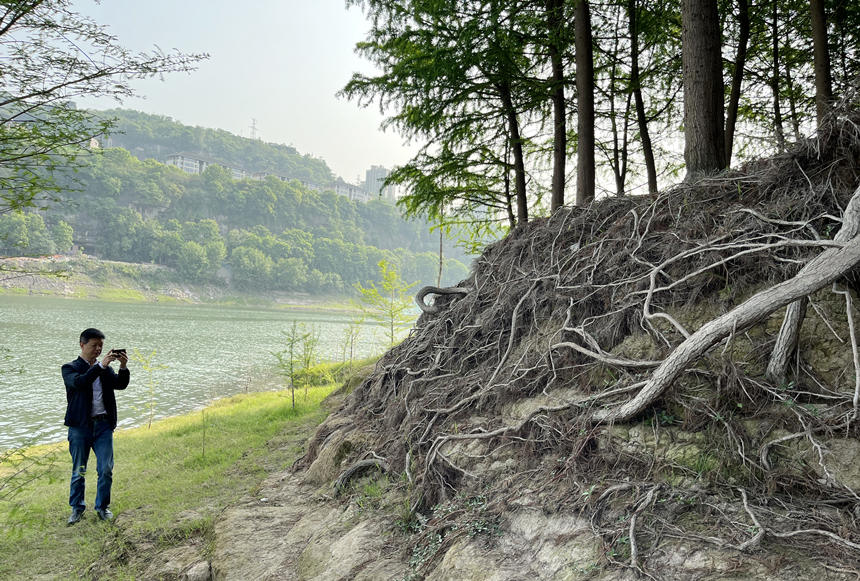 在萬州,長江形成的消落帶面積約有25平方公里。經(jīng)過多年的消落帶栽種實驗,萬州區(qū)林業(yè)科學(xué)研究所高級工程師任憑和同事發(fā)現(xiàn),中山杉有著較強的耐水性和適水性,是消落帶生態(tài)治理的良好選擇!笆嗄陙恚L江萬州段已成功栽植中山杉3200畝,不僅修復(fù)了消落帶脆弱的生態(tài),還在保持水土方面成效顯著。”任憑說,一棵長成的中山杉根系直徑能達到10米以上,且縱橫交錯可覆蓋周圍約80平方米的土地,固土效果良好。