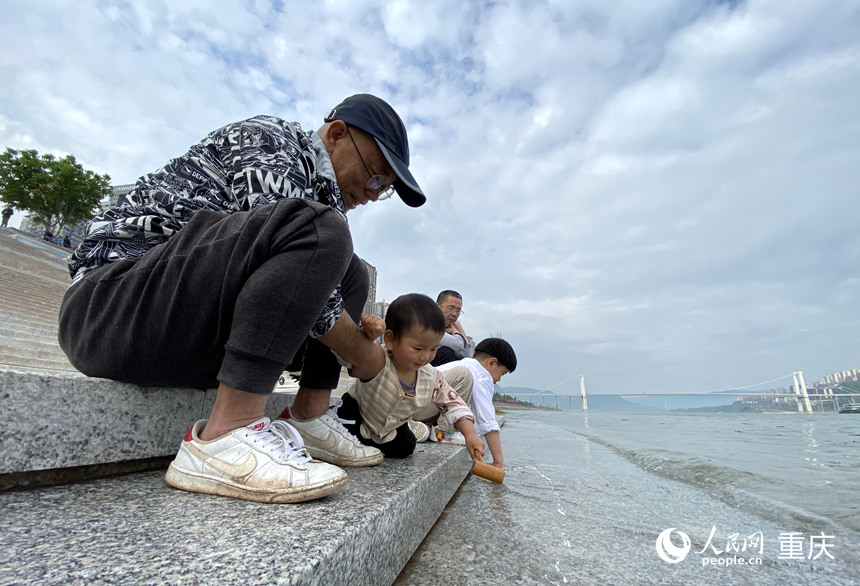 市民在長江萬州段沿岸親水游玩。人民網(wǎng) 劉政寧攝