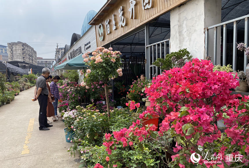 龍都街道曾經(jīng)的養(yǎng)殖場已變身為花市。人民網(wǎng) 劉政寧攝