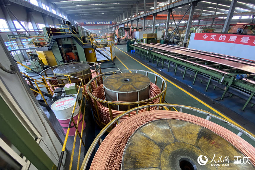 重慶平湖金龍精密銅管有限公司生產(chǎn)線滿負荷運轉(zhuǎn)。人民網(wǎng) 劉政寧攝