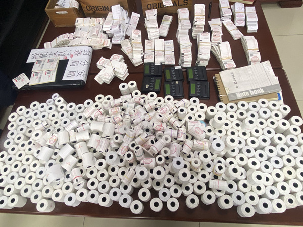 警方查獲的大量出租車發(fā)票。沙坪壩區(qū)公安分局供圖