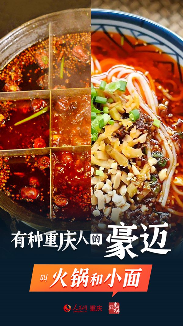 兩種美食,是人們對(duì)美食的共同熱愛,和大快朵頤的豪邁,也是重慶人性情大開大合的承載,更是奮發(fā)向上的重慶精神的最好呈現(xiàn)。