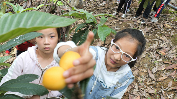 5月13日,彭水自治縣新田鎮(zhèn)小學(xué)校的校園里格外熱鬧,學(xué)校果園里,孩子們穿梭往來于果林間,從枇杷樹上采下一個(gè)個(gè)金黃的枇杷。