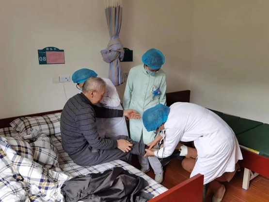 護(hù)理人員上門為老年人檢查身體。石柱縣人民醫(yī)院供圖