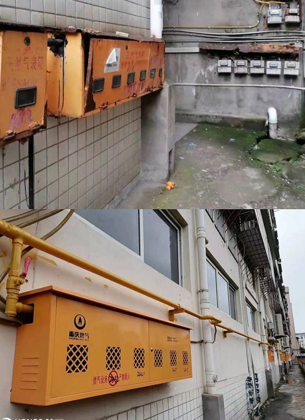 賈嗣鎮(zhèn)東北街H棟整改前后對比。重慶燃氣集團供圖