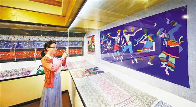五月十七日,在位于黔江區(qū)的重慶市民族博物館,市民在參觀土家族織錦西蘭卡普。特約攝影 楊敏\視覺重慶