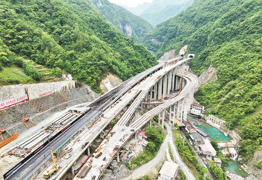 5月22日,城開(kāi)高速雪寶山立交主體進(jìn)入收尾階段。記者 羅斌 攝\視覺(jué)重慶