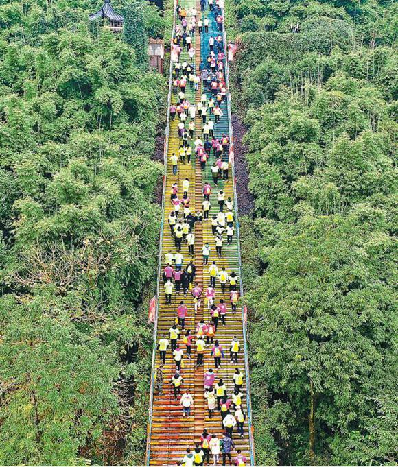 萬(wàn)盛經(jīng)開(kāi)區(qū)奧林匹克公園,市民正在攀登“奧運(yùn)之路”迎接新年。該公園規(guī)劃面積三千多畝,以?shī)W林匹克文化為特色,是當(dāng)?shù)厥忻襁\(yùn)動(dòng)健身休閑的重要場(chǎng)所。(攝于二〇二〇年十二月三十一日)通訊員 王瀘州 攝\視覺(jué)重慶