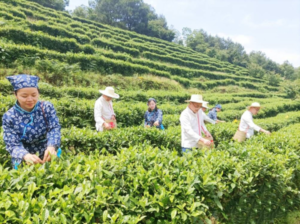 學(xué)員到荔枝街道方坪村茶園助農(nóng)采茶。涪陵區(qū)委黨校供圖