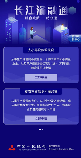 支農(nóng)再貸款鄉(xiāng)村振興幫扶貸、支小再貸款幫扶貸線上平臺。人民銀行重慶營業(yè)管理部供圖