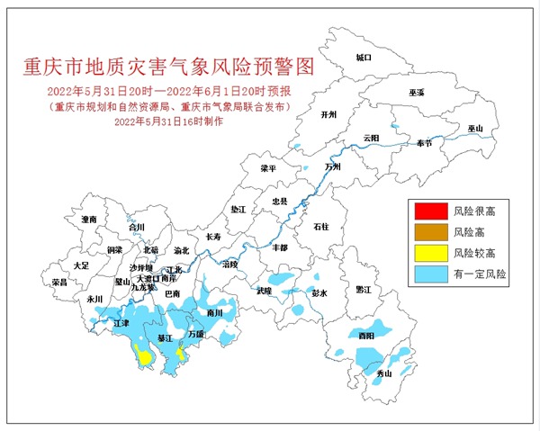 5月31日16時(shí),重慶市規(guī)劃和自然資源局、重慶市氣象局聯(lián)合發(fā)布全市地質(zhì)災(zāi)害氣象風(fēng)險(xiǎn)預(yù)警。