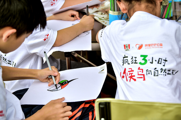 孩子們繪制自己心目中最喜歡的小鳥樣子。重慶肯德基供圖