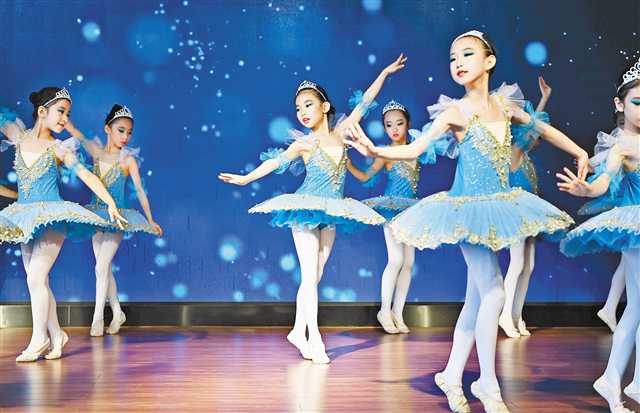 5月31日,沙坪壩區(qū)南開小學(xué),芭蕾舞社團的小學(xué)生表演芭蕾舞《藍鳥》。當(dāng)日,“童心永向黨,喜迎二十大”南開小學(xué)2022年“六一”慶;顒郁摺半p減”成果展演舉行。特約攝影 孫凱芳/視覺重慶