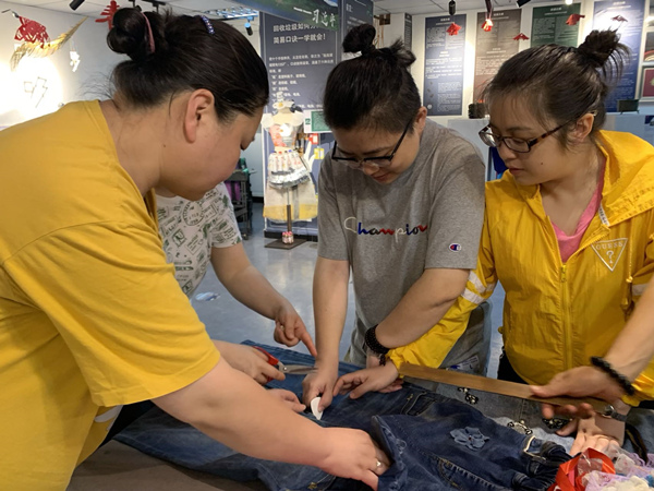 “舊物回收,垃圾分類,堆肥制作……”聽完相關(guān)生態(tài)環(huán)保知識宣講后,作為“資深學(xué)員”的李俊,戴上頂針,拿出剪刀,踩兩下縫紉機,只一會兒工夫,一條穿不了的牛仔褲就在她手中變成了一個漂亮的購物袋。