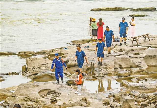 5月21日,大渡口區(qū)滑石灘長(zhǎng)江邊,值班隊(duì)員們正在巡邏。