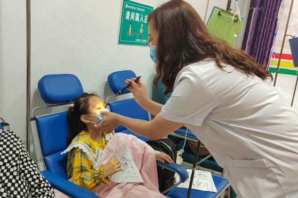 醫(yī)護人員為小朋友檢查眼睛健康。璧山區(qū)衛(wèi)生健康委供圖