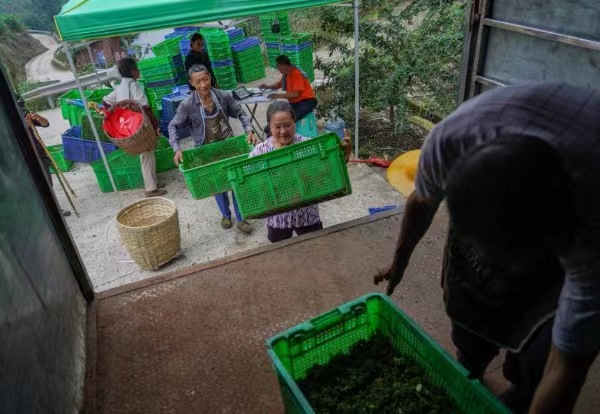 附近加工企業(yè)進(jìn)村收購村民們采摘的花椒。永川區(qū)委宣傳部供圖