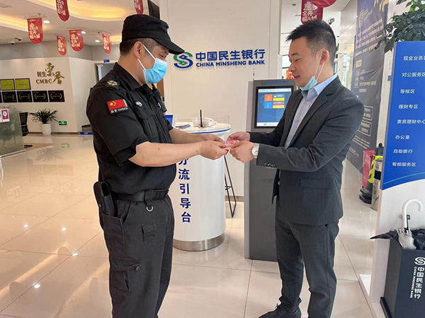 此前,宋明峰在營業(yè)廳門口對來網(wǎng)點人員進行體溫測量、掃碼等疫情防控工作時,發(fā)現(xiàn)大門口臺階處遺落一疊百元鈔票。于是立即通過對講機通知監(jiān)控室值班隊員查看監(jiān)控錄像,追尋失主行走軌跡。