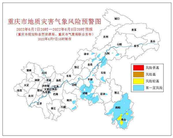 6月7日16時,重慶市規(guī)劃和自然資源局、重慶市氣象局聯(lián)合發(fā)布全市地質(zhì)災(zāi)害氣象風(fēng)險預(yù)警。