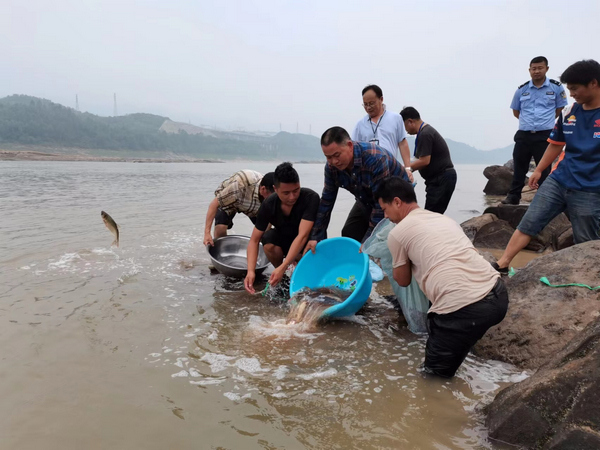 長(zhǎng)江魚被重新放回江中。麻柳嘴鎮(zhèn)供圖