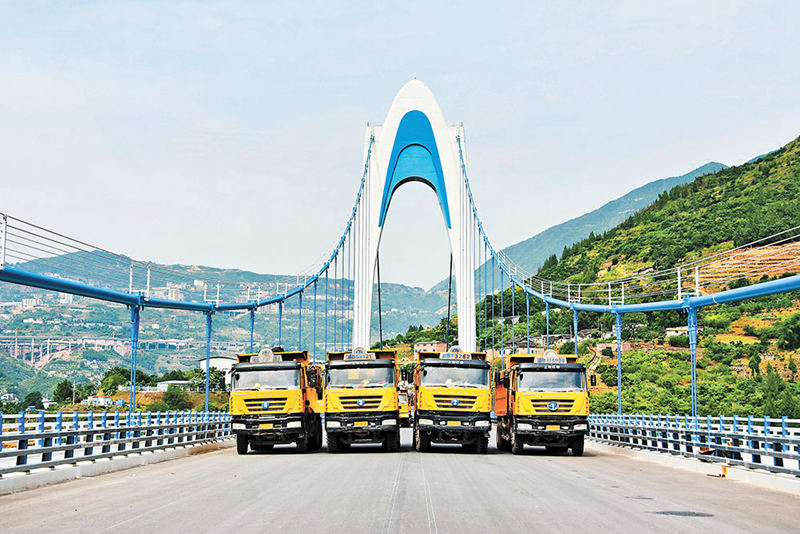 6月8日,巫山縣桂花大橋上,40多輛大貨車行駛到固定位置,對大橋開展靜力荷載試驗。