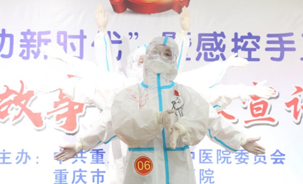 小品《細(xì)菌小伙來相親》,通過大家喜聞樂見的表演形式,傳達(dá)手衛(wèi)生科普知識;配樂朗誦《以青春之我,頌百年信仰》,抑揚(yáng)頓挫,情感豐沛,獲得掌聲回應(yīng);舞蹈《病毒走開》,醫(yī)護(hù)人員穿上防護(hù)服,跳著整齊可愛的洗手舞,表達(dá)了對群眾的守護(hù)之心;詩朗誦《若我歸來》,表達(dá)了青年醫(yī)生的擔(dān)當(dāng)與奉獻(xiàn)……