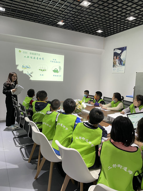 重慶工商職業(yè)學(xué)院學(xué)子向九龍坡區(qū)二郎街道小學(xué)生分享新能源領(lǐng)域知識。重慶工商職業(yè)學(xué)院供圖