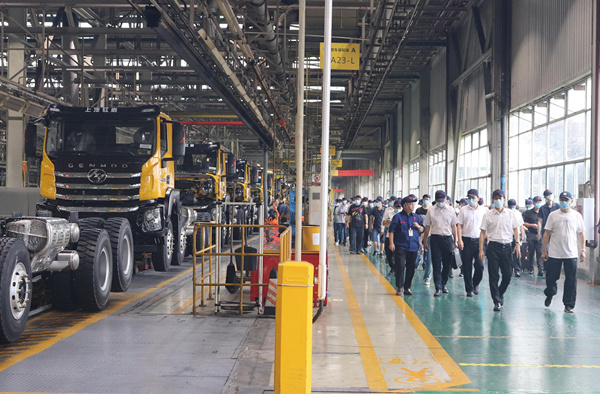 在上汽紅巖工作車間,一線崗位員工按照“兩單兩卡”要求,井井有條地開展工作。上汽紅巖相關負責人以車間工作為基礎,詳細講解了企業(yè)落實一線崗位安全生產(chǎn)責任的情況。兩江新區(qū)80余家規(guī)上工貿企業(yè)、限額以上商貿企業(yè)的代表,現(xiàn)場觀摩學習,深有感觸。