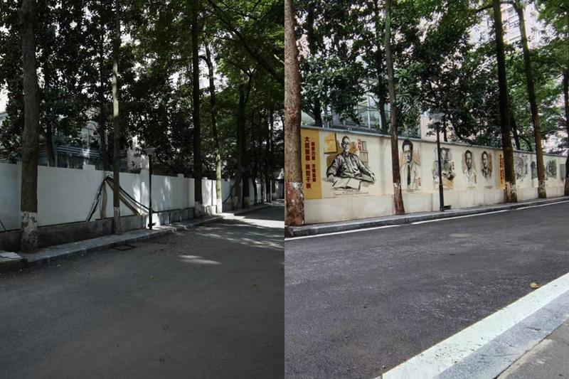 重醫(yī)西遷文化墻整治前后。受訪單位供圖