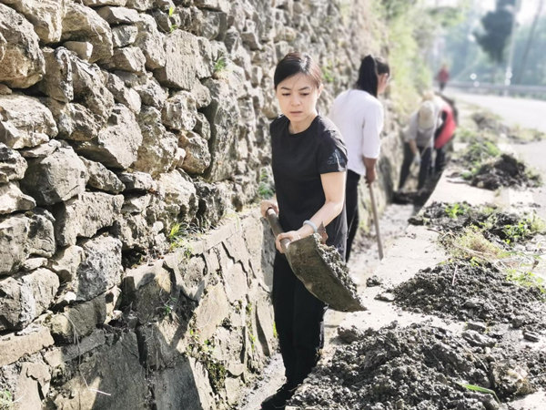 張昊陽在長連村參與新時代文明實踐活動、村容村貌整治活動。中信銀行重慶分行供圖