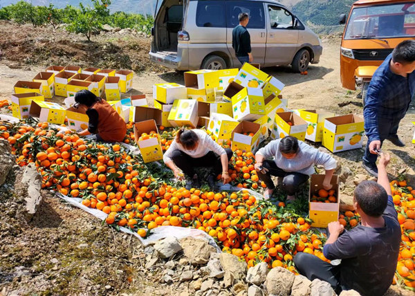 中信銀行重慶分行自發(fā)購買的臍橙,正在裝箱運(yùn)往主城。中信銀行重慶分行供圖
