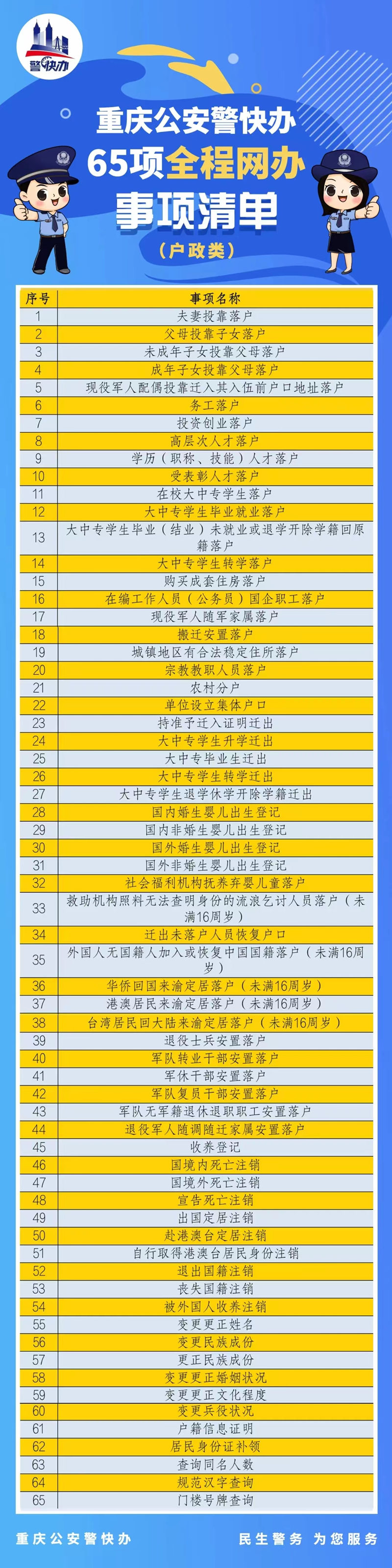 - 重慶公安65項(xiàng)戶(hù)政業(yè)務(wù)實(shí)現(xiàn)“全程網(wǎng)辦”