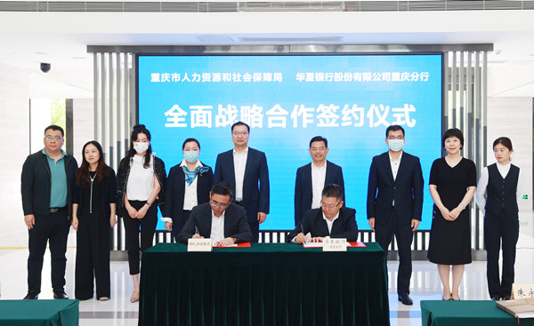 華夏銀行重慶分行與重慶市人力資源和社會保障局簽訂全面戰(zhàn)略合作協(xié)議。華夏銀行重慶分行供圖