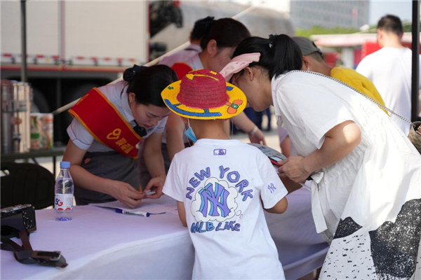 艷陽下,小朋友們不懼酷暑,熱情高漲。活動(dòng)結(jié)束后,重慶愛心翼站特別為重慶消防機(jī)動(dòng)支隊(duì)和犬隊(duì)的消防員送上解暑飲品,在炎炎夏日中送來“清涼”。