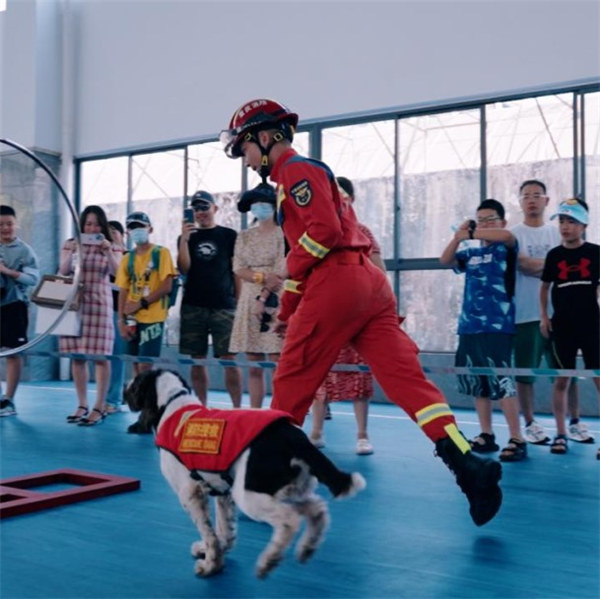 隨后,消防員們?yōu)樾∨笥蜒菔玖怂丫热娜粘S?xùn)練:服從、障礙、箱體搜救,現(xiàn)場(chǎng)模擬廢墟救援,帶小朋友們見證了搜救犬如何搜尋廢墟下的生命,并參觀了搜救犬犬舍基地以及機(jī)動(dòng)支隊(duì)。