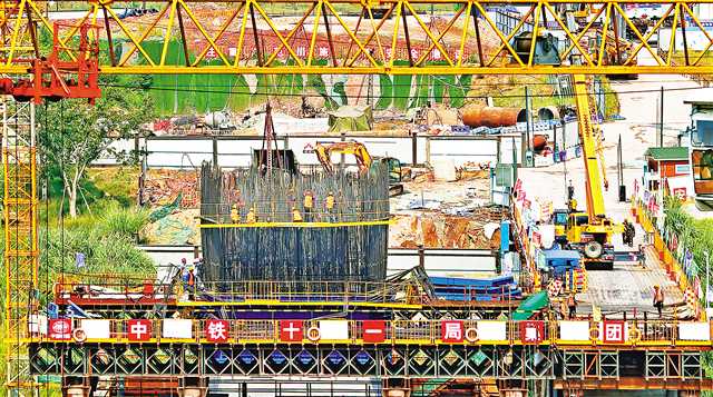 8月5日,南岸區(qū)廣陽灣大橋施工現場,中鐵職工正冒著酷暑加緊進行主橋墩鋼筋捆扎。